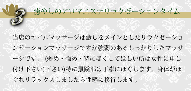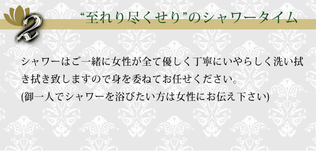 シャワー・マッサージ・性感・シャワー(半々の施術時間になり、どちらかを長くする事は出来ません)